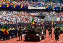 Sur une tribune érigée au milieu de la pelouse du stade, devant les membres de la Cour constitutionnelle, le président…